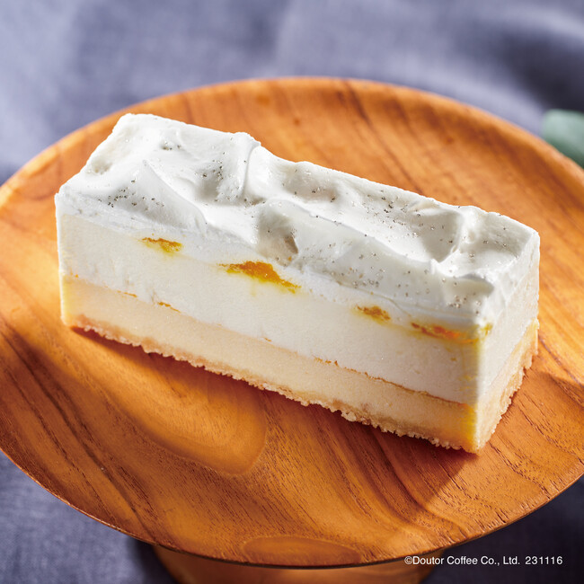 グラハムクランチの土台に、濃厚な口当たりのベイクドチーズケーキと、隠し味にホワイトチョコと白ワインを使ったレアチーズケーキを重ねています。さらに、レモンソースとホイップクリームを重ね、すっきりした味わいも楽しんでいただけます。天面に銀箔シュガーをトッピングして、雪のような冬のチーズケーキに仕上げました。