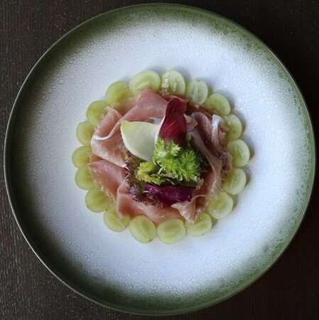 生ハムの塩味とシャインマスカットの甘みは非常に相性が良く、全体的にバランスの取れた一品となっています。