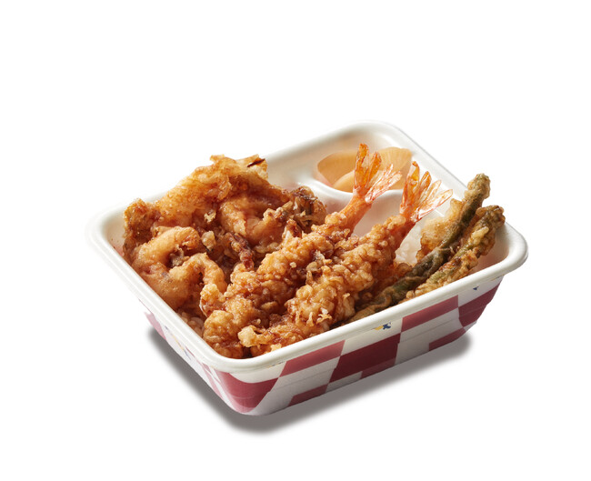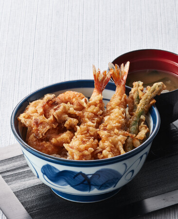揚げたての天ぷらに甘辛い丼たれをまとわせて、しっかりとした味付けが人気の "たれづけシリーズ"の新作。人気の「海老」を2尾、プリプリ食感と香り豊かな「むきえびとまいたけのつまみ揚げ」、彩りの「いんげん」の天ぷらを”たれづけ”にしました。海老を存分に味わえる天丼です。