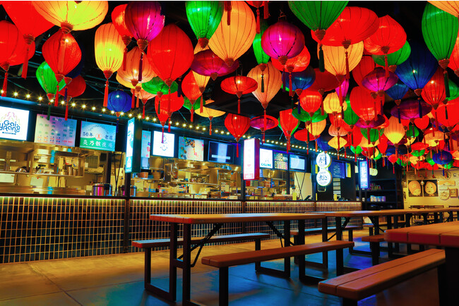 カラフルなランタンに彩られた、写真映え抜群のエリア。