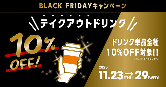 株式会社サンマルクカフェ(本社:岡山県岡山市 代表取締役社長:鎌田 滋之)は、店内だけではなく、どんなところでも期間限定商品を始めとしたサンマルクカフェの様々なドリンクをお客様にお得にお楽しみいただきたいという思いから、11月23日(木・祝)から11月29日(水)までの期間で、テイクアウトドリンク限定の『ブラックフライデーキャンペーン』を実施いたします。
