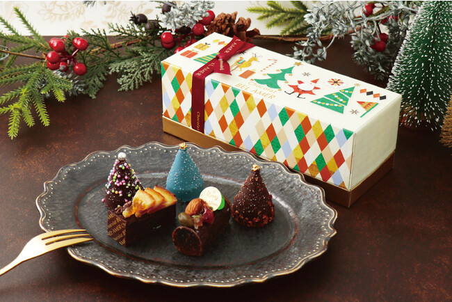クリスマスツリーと伝統的なクリスマスケーキ「ブッシュドノエル」をショコラで表現したクリスマス限定のショコラアソート。