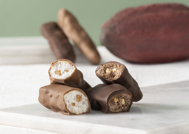 こだわりのお米・素材と職人の技によって作られた、ふわっとサクッとしたアーモンド入りのあられに、ベルギー産ミルクチョコレートとダークチョコレートをそれぞれコーティングしました。