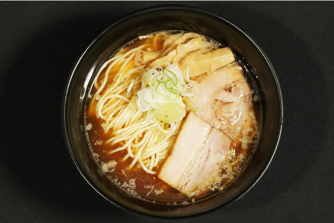 飛び魚を焼いた「焼きあご」で上品で美味しいだしをとったスープ。そこに中細麺で程よい硬さの麺を加え完成した一杯。煮干しのような生臭さが無く旨味が高く香ばしさも感じる贅沢な一品です。