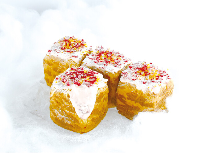 イタリアの定番スイーツ、四角いシュークリーム「ビニエ」と、揚げた生地の中にこだわりのクリームをたっぷり詰めた「ボンボローニ」に冬季限定のおいしさが登場しました。どちらもイタリア産リコッタチーズを使用した特製ストロベリークリームをたっぷりと生地の中に詰めています。この冬限定の特別なテイストをお楽しみください。