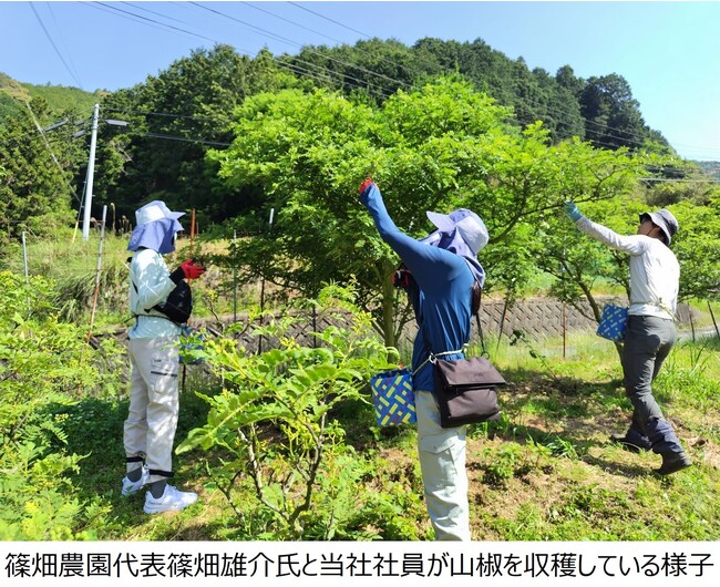 そのような危機的状況のなか、当社は、山椒の持続的な生産を目的として、有田川町の若い山椒農家である篠畑雄介氏への支援を決定しました。直接的な支援だけでなく、社員を派遣して収穫や選別作業のお手伝いなどの人的貢献も積極的に行うことで、生産者と心も通わせる活動を目指しています。