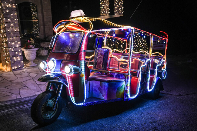 イルミネーションのトゥクトゥクでパシャリ カリコ1番の映えスポット