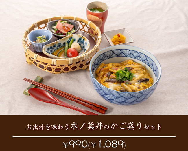 ・お出汁を味わう木ノ葉丼のかご盛りセット 990円(税込み1,089円)