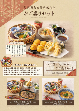 ・新メニューとして「名物玉子焼と天ぷらのかご盛りセット」「小さな天丼のかご盛りセット」「お出汁を味わう木ノ葉丼のかご盛りセット」「お出汁を味わう木ノ葉丼の麺セット」を販売開始