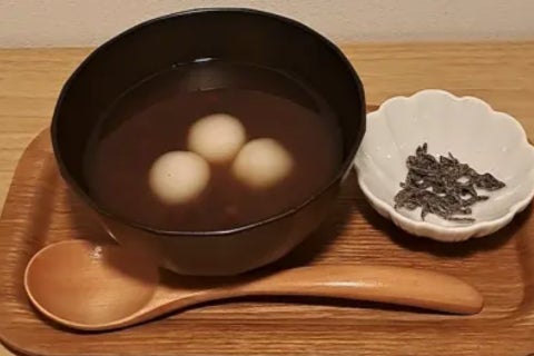 北海道産のあずきをたっぷり使ったぜんざいです。セットの 塩昆布がより甘味を引き立てます。あずきの粒感とモチモチとした白玉の食感の差をお楽しみください。