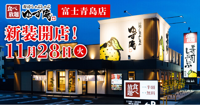 株式会社物語コーポレーション(本社:愛知県豊橋市/代表取締役社長:加藤 央之)が、全国94店舗展開する『寿司・しゃぶしゃぶ ゆず庵』は、『寿司・しゃぶしゃぶ ゆず庵 富士青島店』(静岡県富士市)を、2023年11月28日(火)に新装開店いたします。