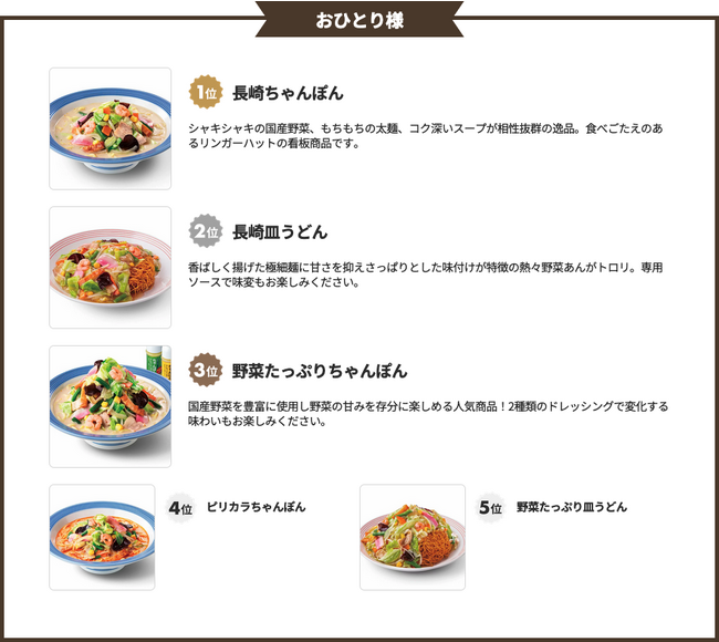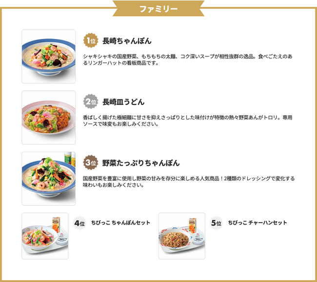 ■「ファミリーvs.おひとり様!リンガーハット人気メニューランキングTOP5」