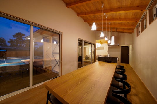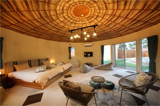客室温泉、プライベートプール、プライベートドッグラン、ファイヤーピットの4つの設備を備えた豪華仕様、定員は最大8名までと大人数も対応しております。