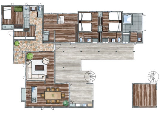 こちらがUMITO LIFE 湯河原の間取り図です。十分すぎるほど広々とした別荘で、日常の喧騒を忘れ、ゆったりとしたひとときをお過ごしください。