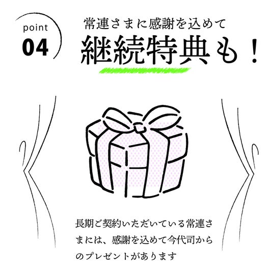 通年型をご契約の常連さまには、今代司から感謝を込めたサプライズプレゼントがあるかも…!?