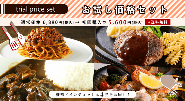 ■豪華メインディッシュ4品を堪能通常価格6,890円+送料のところ、初めてご購入される方限定で 5,600円送料無料に!ぜひこの機会にお試しください。ご注文頂いてから、シェフが調理を開始致します。