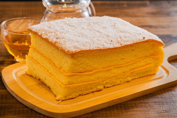 台湾カステラは、台湾で古くから親しまれている家庭的なスイーツで、その場で焼き上げるケーキという意味の「現?蛋?(シエンカオダンガオ)」と呼ばれています。大きくカットされ、フワフワの食感とほんのりした甘さは、おやつだけでなく朝食などにもぴったりです。