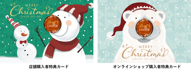 2023年11月13日(月)~ 12月25日(月)の間、全国90店舗を対象に4000円(税込)以上、オンラインショップで5000円(税込)以上をご購入いただいたお客様には、イラストのお鼻にリンドールをはめこむことができ、ツリーのオーナメントにもなるクリスマスカードがもらえます。