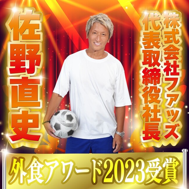 株式会社ファッズ代表取締役社長 佐野直史は、2023年12月5日(火)に発表された「外食アワー ド2023」を受賞いたしました。圧倒的な意思決定スピードとサッカー流チーム作りによる遂行スピードを実現する大きな組織を作り上げた経営者としての手腕と、6つの業態を成長路線に乗せた業態作りの神と称されるなど、マーケッターとしての手腕の2点が評価された事が授賞理由となりました。