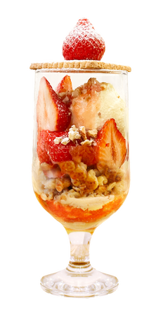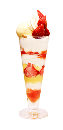 商品説明:あまおうの素材の味を、上品ないちごソースと生クリーム、カスタード、アイスやナッツなど様々な味わいで楽しめる贅沢パフェ。