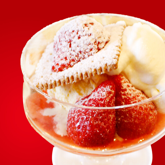 商品説明:【季節限定のスペシャルパフェ】ストロベリーアイスの爽やかな甘さが、クリーミーなピスタチオアイスと調和し、口当たりは絶妙になめらか。あまおうの爽やかな酸味がアクセントとなり、一口ごとに異なる味わいが楽しめます。