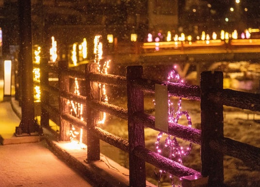 長門湯本温泉では、温泉街を流れる音信川(おとずれがわ)を舞台に、長門市出身の童謡詩人「金子みすゞ」の詩をテーマにした灯りイベント「音信川うたあかり」を実施しています(2018年度開始。今回で6回目)。