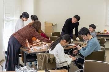 一つずつ、型紙に沿って制作、思い思いの色で着色してつくっています。