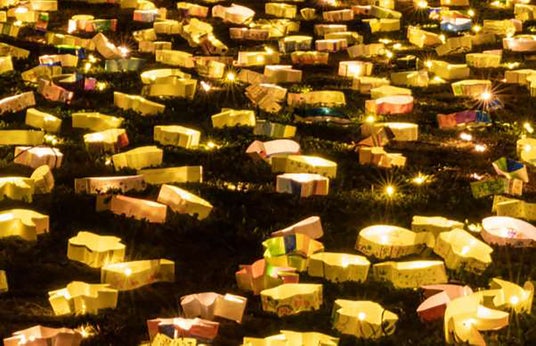 みすゞさんの詩「折紙あそび」をテーマに、小さな「折り紙あかり」が灯ります。平和と幸せを祈る折り鶴のあたたかな光をご覧ください。