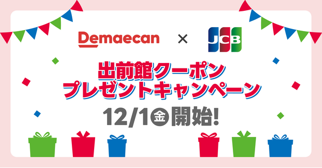 株式会社出前館(本社:東京都渋谷区、代表取締役社長:藤井英雄、以下:出前館)が運営する日本最大級のデリバリーサービス『出前館』と株式会社ジェーシービー(本社:東京都港区、代表取締役兼執行役員社長:二重孝好、以下:JCB)は、2023年12月1日(金)~2024年1月8日(月・祝)の期間で、「【JCB×出前館】出前館クーポンプレゼントキャンペーン」を実施いたします。