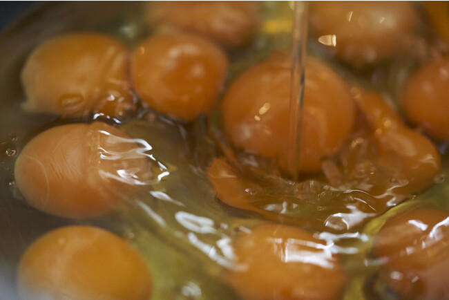 プリンの味の決め手となる卵。