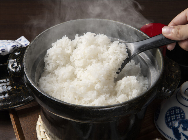 店内毎日精米!炊き立て土鍋ご飯 1合 590円(税込649円)