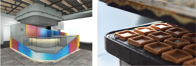 他にはない組み合わせを楽しんだり、感性を刺激する”お菓子の実験”を行うライン「プレスバターサンドギャラリー」が、全国3店舗目となる「プレスバターサンドギャラリー有楽町マルイ店」をオープン。今回の店舗はプレスバターサンドギャラリーのテーマである「ケミストリー」の世界観を表現すべく、店装には「チタン」素材を使用。店舗全面が通路に面する区画という特徴を利用し、商品を購入するだけでなく、お客様が訪れて楽しいと思っていただけるよう“購買体験”を意識した店舗に設計しました。店舗に工房を併設することでワクワク感を醸成。毎日店舗で焼き上げる“焼きたてバターサンドシリーズ”も展開します。