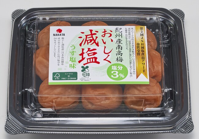 食塩の取り過ぎは高血圧を引き起こし、脳血管疾患や心疾患などの原因になるため、減塩はその予防や管理に効果があると言われています。そうした中で梅干しは、塩分の高い象徴的な食品として取り扱われており、減塩化への取り組みは長年にわたる私どもの大きな課題でした。特に梅干し愛好者の方は適度な塩味を好む傾向にあり減塩した梅干しは美味しくないとの意見が多く、市場に定着することはありませんでした。このような背景の中2007年よりおいしい減塩梅干しの研究・開発と積極的な市場導入に取り組んでまいりました。