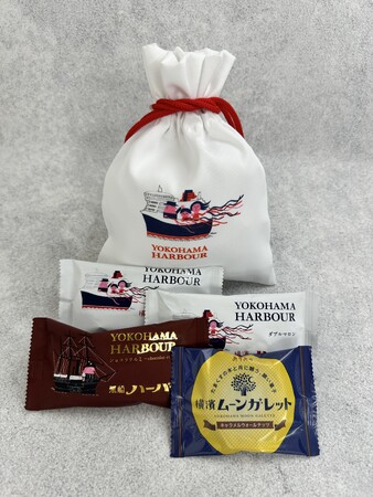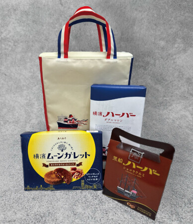 内容:横濱ハーバー ダブルマロン8個入×1箱、黒船ハーバー ショコラクルミ5個×1箱、横濱ムーンガレット8個入×1箱、オリジナルトートバッグ付き