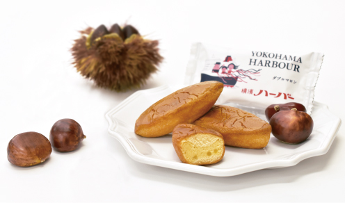 定番商品の横濱ハーバーダブルマロンは、港・ヨコハマの船をイメージし伝統の製法で焼き上げた贅沢なマロンケーキ。薄くソフトなカステラ生地に刻んだ栗を入れた自家製ハーバー餡をやさしく包み込み、しっとりとした触感と口に広がるマロンの味わいが絶妙な一品です。