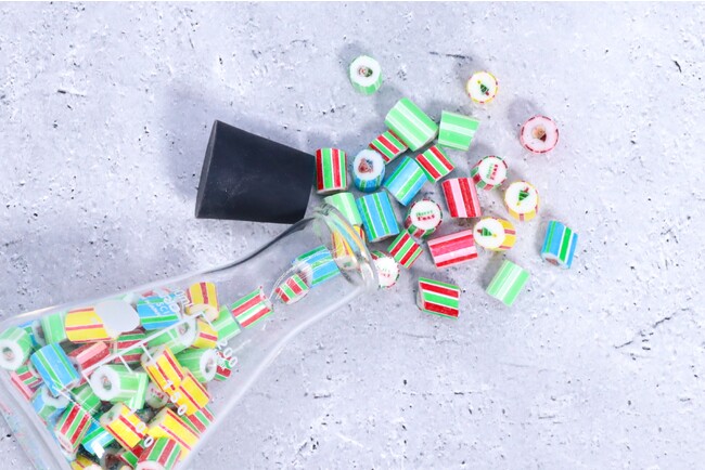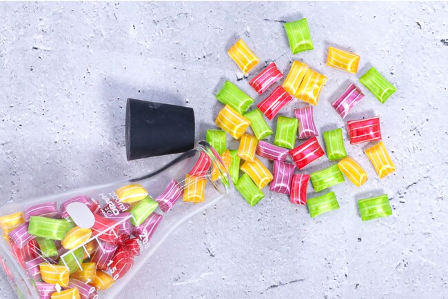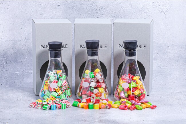 手土産や贈り物にぴったりの、美しい三角フラスコに入ったプレミアムギフトキャンディ
