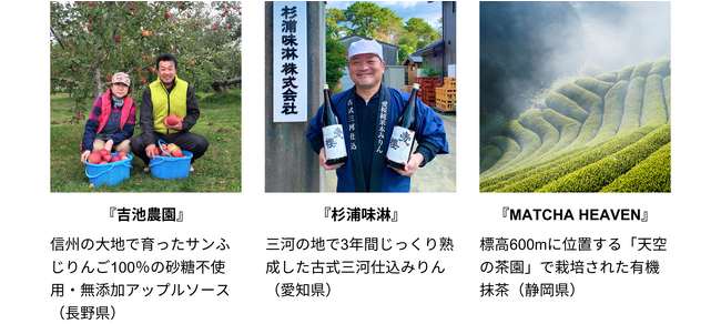 ドーナツは、揚げずに焼きと蒸しの製法で仕上げたモチモチしっとり食感。玄米粉やひよこ豆などの栄養素の高い食材を使用しています。信州の大地で育ったりんご100%のアップルソースで甘みを出し、3年間熟成したみりんの発酵パワーを豊富に含んだ栄養満点のドーナツです。抹茶は標高600mで栽培された有機のものを使用しています。