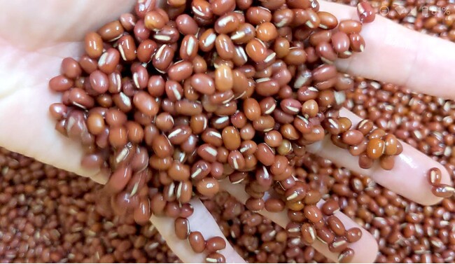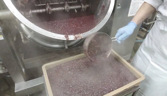 小豆を焚くだけの特別の機械とお亀堂の独自の製法にて小豆の「粒」・「風味」を大切にふっくらと炊き上げています。