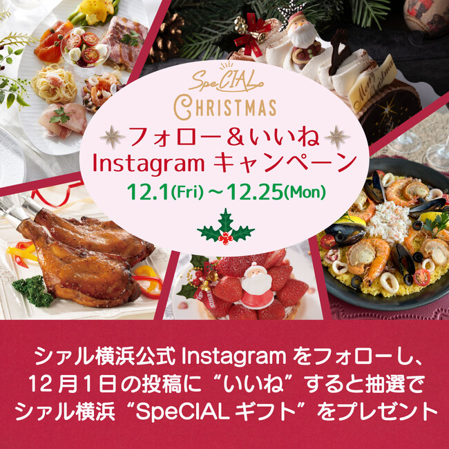 シァル横浜公式Instagramをフォローのうえ、2023年12月1日の対象投稿に”いいね”していただくと、抽選で33名様に「CIAL横浜SpeCIALギフト」をプレゼントいたします。