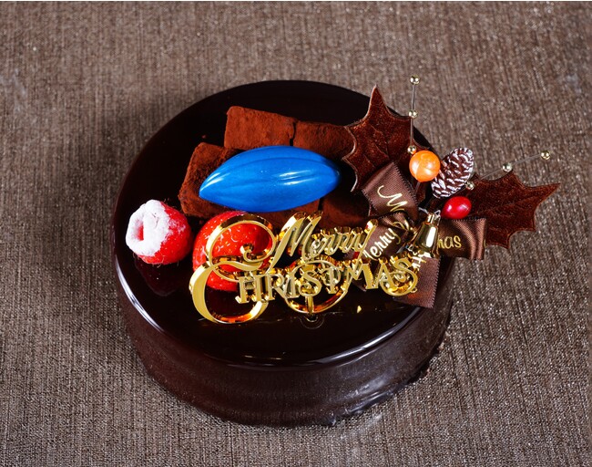 スイートチョコとヘーゼルミルクチョコ2層のムースの間にオレンジムースが入った濃厚ケーキの上には、横浜パッションの生チョコをトッピング。