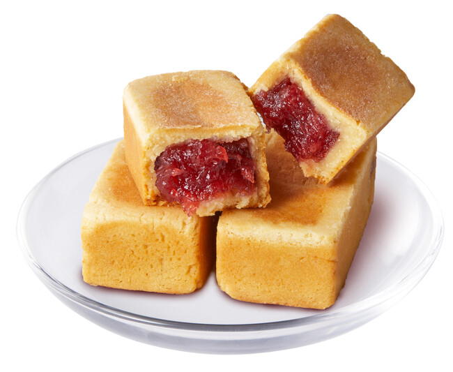 フレッシュな甘酸っぱさの特製ストロベリージャムがたっぷりと入った季節限定の味わいです。 バターのリッチな風味が特徴のケーキ生地とのおいしさのコントラストをお楽しみください。