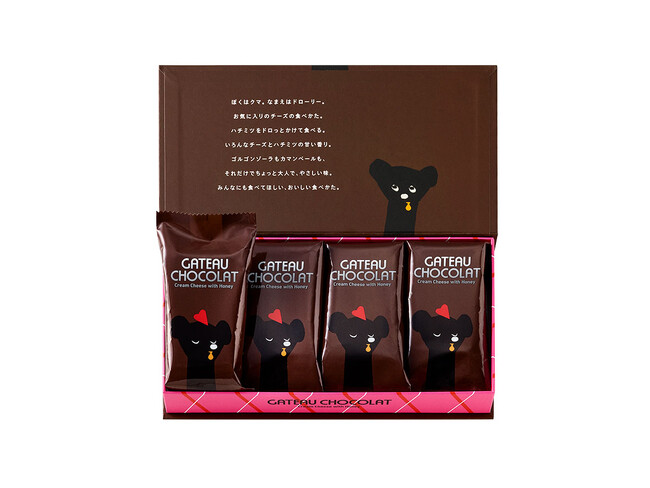 いつもよりおすまし気分のドローリー。全部自分で食べちゃおうかな?それとも仲良しのあの子にあげようかな、、、目を閉じて思いをめぐらせる姿が可愛らしい、ドローリーのブック型のパッケージはバレンタイン限定です。箱を開ければ、おすましドローリーが飛び出してきます。贈り物にはもちろん、自分へのご褒美スイーツとしても、パーティーへのお手土産にもぴったり!ほんのり優しいチョコレート、チーズ、蜂蜜のハーモニーが生み出す、絶品スイーツを是非お楽しみください!バレンタイン時期限定の販売となりますので、お早めにお買い求め下さいませ。