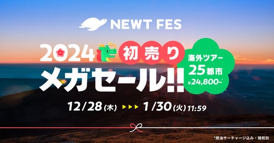 「あたらしい旅行を、デザインする。」をミッションにする株式会社令和トラベル(本社:東京都渋谷区、代表取締役社長:篠塚 孝哉)が運営する海外旅行予約アプリ『NEWT(ニュート)』は、NEWT FES 2024 初売りメガセールを開催します。