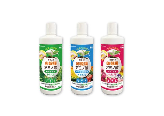 オーガナブルは、卵の殻の内側についている薄膜「卵殻膜」を原料とした液体肥料です。近年、卵殻膜は化粧品やサプリメントの原料としても使用され栄養分を豊富に含むスーパー素材として注目を集めています。ENEGGOは、この卵殻膜に植物の成長に重要なL型アミノ酸18種が含まれていることに着目いたしました。