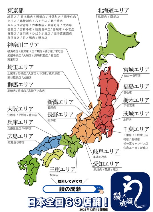 2022年9月に横浜本店をオープン。秋は鰻の閑散期と言われながらも、SNSなどマーケティング施策により人気鰻専門店に。2023年12月24日現在で、国内に70店舗出店しグループ全体の月間売上が2億円を超えている。コロナ禍で増えた居抜き物件の活用、職人の技に頼らないシステム化された鰻調理方法などにより、本格的なうな重を安価で提供している。