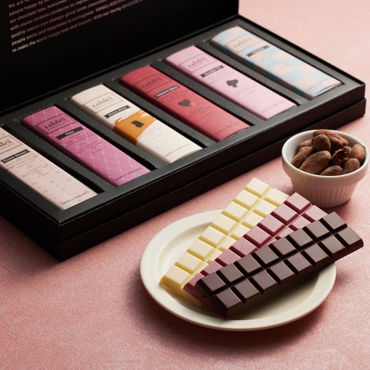 『タブレット6枚セット バレンタイン限定アソート』はカカオ豆の焙煎から手がけたシングルビーンのチョコレートを6種楽しめる商品です。カラフルなパッケージや産地によって異なるカカオの豊かな風味を楽しめます。店舗でお土産としても人気のある『タブレットショコラ』をバレンタイン限定のアソートで販売します。