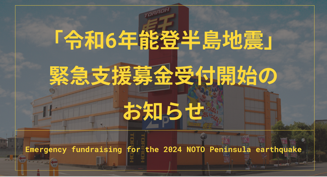 これを受けて、アミューズメント事業を展開するteamTORAOH!(兵庫県・株式会社太陽産業)では、1日でも早い被災地の復興を願い、この令和6年能登半島地震被害に対する緊急支援金の受付を1月2日より開始いたしました。