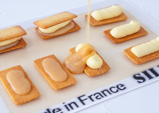 白いバターキャラメルサンドウィッチは、ラングドシャー風のサブレと、独自の製法でゆっくり煮詰めた白いバターキャラメルクリーム、そしてなめらかなムースリーヌクリームが絶妙に合わさった逸品です。