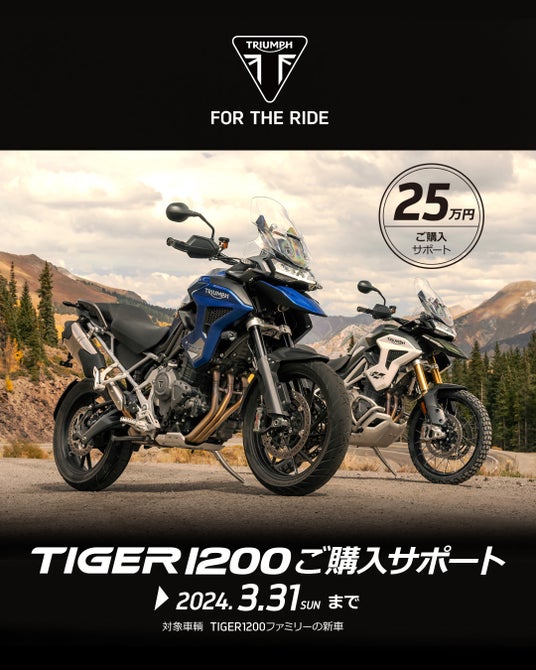TIGER 1200ファミリーの新車をご成約いただいた方に25万円分のご購入サポート