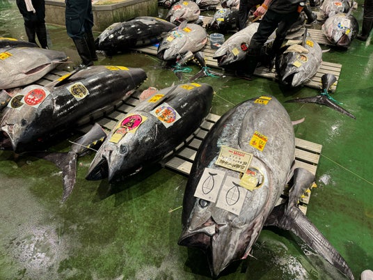画像一番右のマグロが後に落札された1億円マグロ